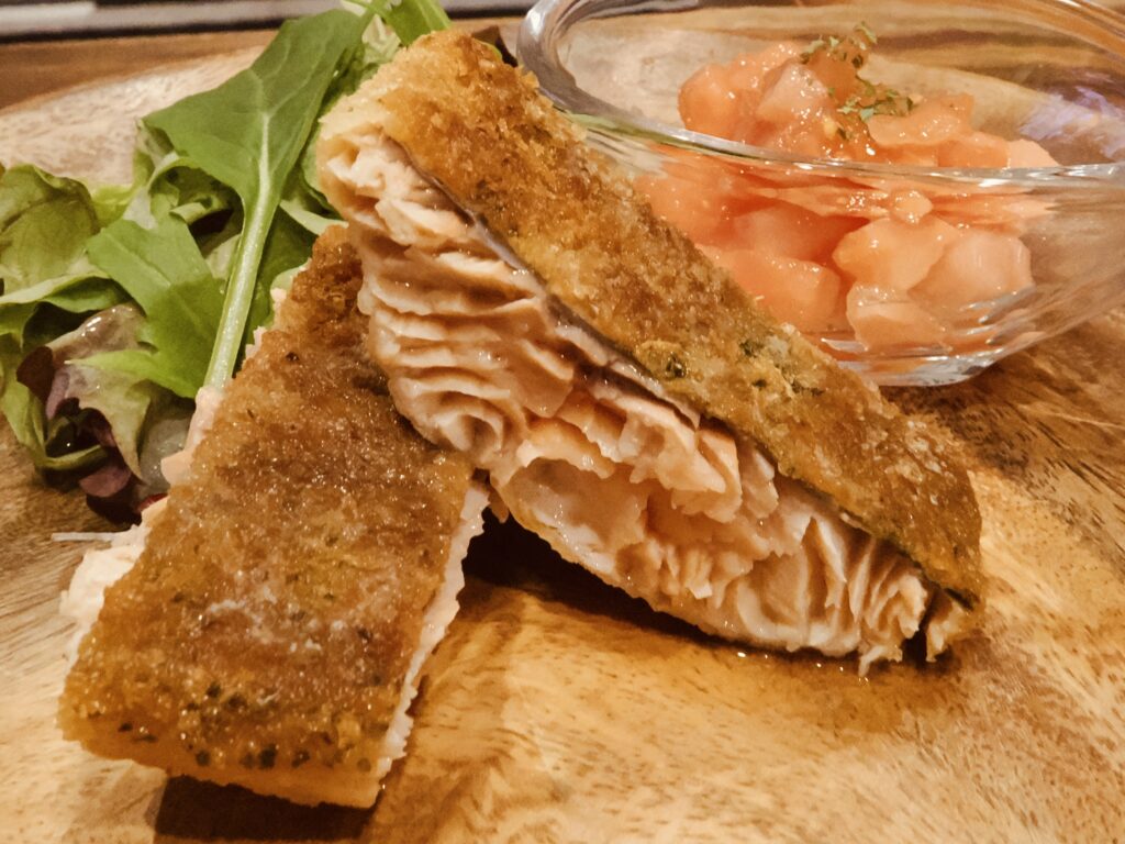 完成!羅臼サクラマスのパリッと皮目が美味い香草パン粉ソテー