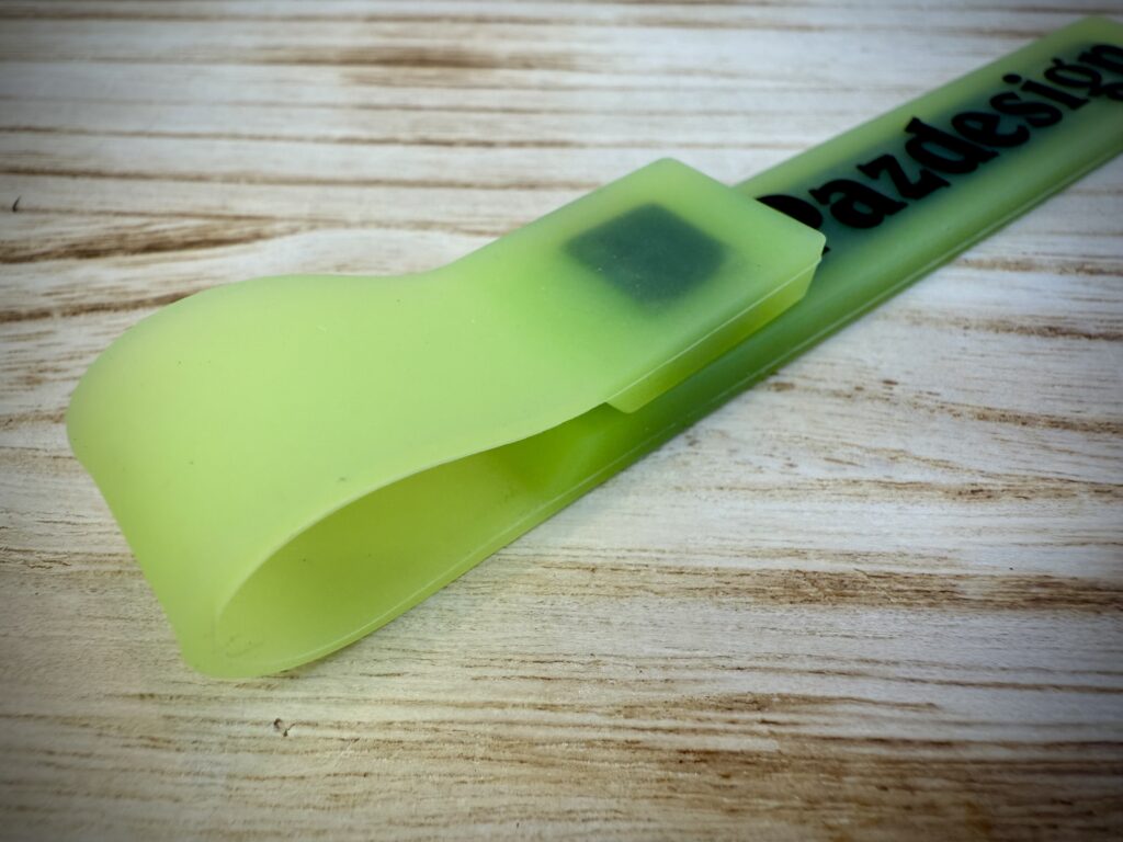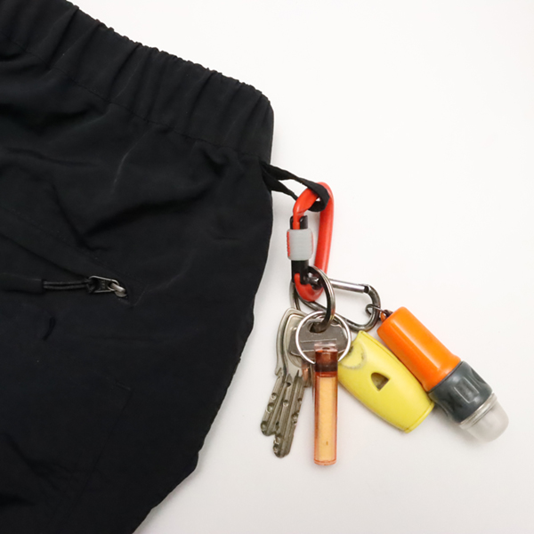 本体を折り返すことで、フローティングベストやバッグのベルト類に簡単取り付け可能に!50mm幅まで対応します。