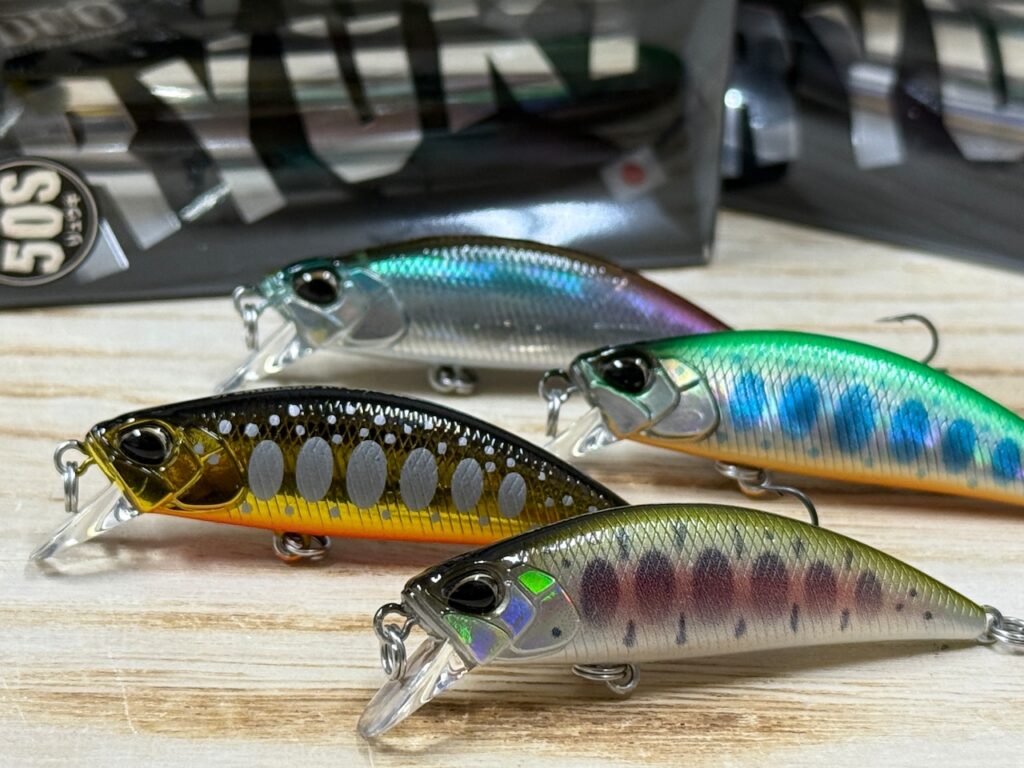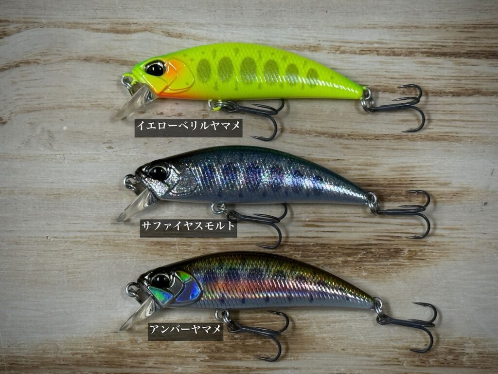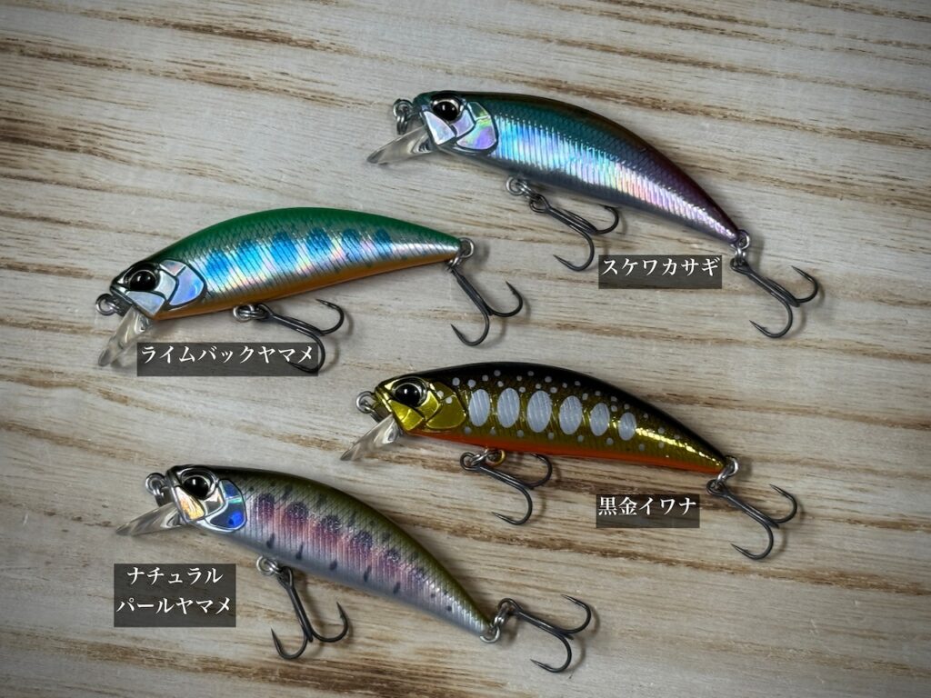 どのカラーも綺麗で目移りしちゃいます!個人的には黒金イワナとスケワカサギが好みですね。リュウキは釣れるし、価格も比較的リーズナブルなのでボックスにはぜひ入れておきたいですね。