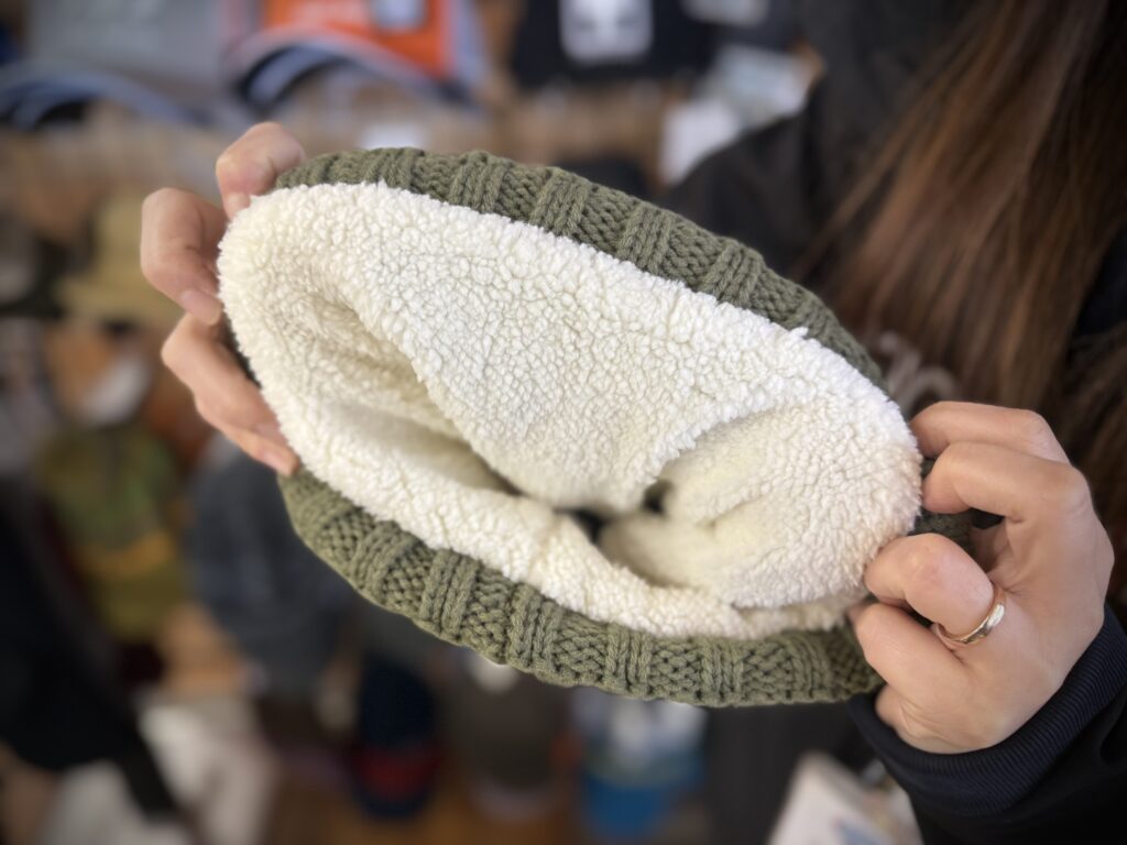 ニットワッチの裏を見てみるとモッフモフのボア生地がとても暖かい!