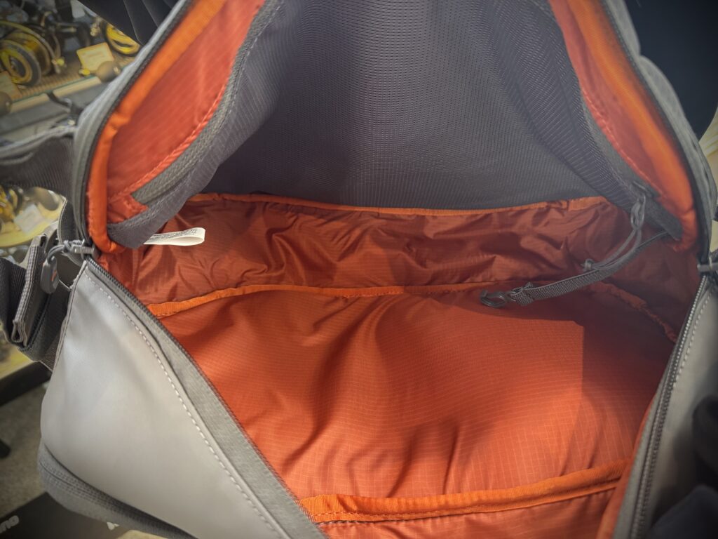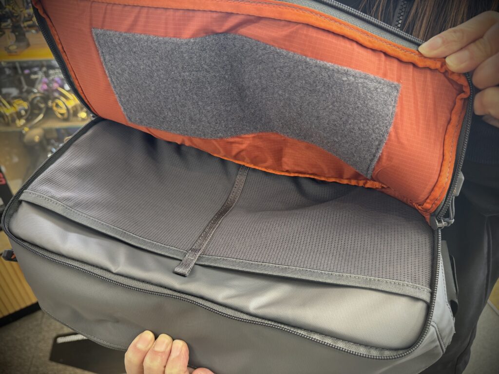メイン部のフロントにある収納も超便利!例えばメイン部に、大きめのミノーが入ったケースなんかを入れておいて、このフロント部は小さめのミノーやスプーンのボックス入れと使い分けるとカバンの中をガサゴソしなくて済みます。