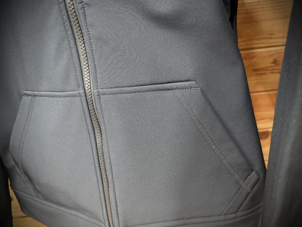 体幹をしっかり温めてくれる作りで、外側はハードフェイス、内側はふわっとしたソフトフリース。見た目はかなりスマートなので、普段着としてそのまま街に出ても全然アリ!むしろこれが良いまである(笑)。
