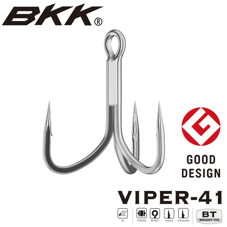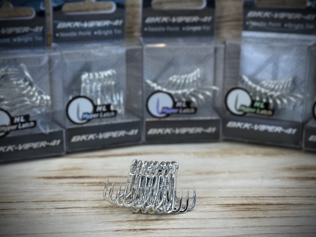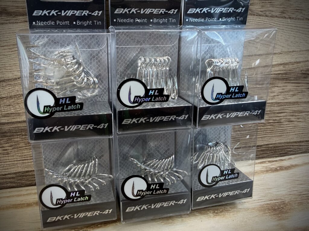 新入荷となるヴァイパー41の特徴は、ルアーアクションの影響を減らしつつ、貫通力と強度、保持力を最大限に高めらた太軸のトレブルフックです。