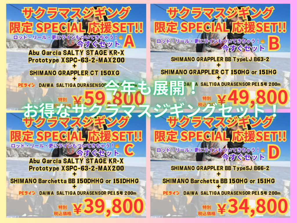 流氷が来るまでは、まだまだ楽しめる羅臼のサクラマスジギング。当店には今年初めてみたい方はもちろん、ベテランアングラーさんのもう1セットほしいな〜にも対応する『サクラマスジギング限定SPECIAL応援セット』を展開しています。