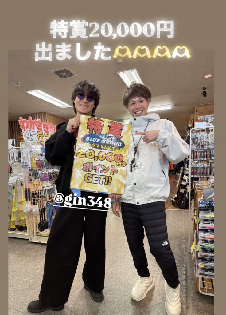 ブルーマリン賞を手繰り寄せたのはこちらのお客様!商品券10,000円をゲット。おめでとうございます!
