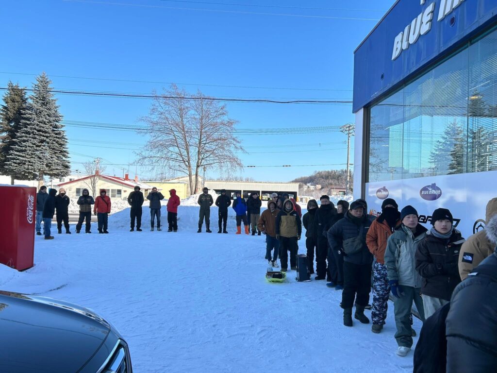 先頭に並んでいた方にお尋ねすると夜中の3時よりとのこと・・・。この日の夜中はもう-20度の世界。そんな中でもお並びいただきホント感謝しかございません。