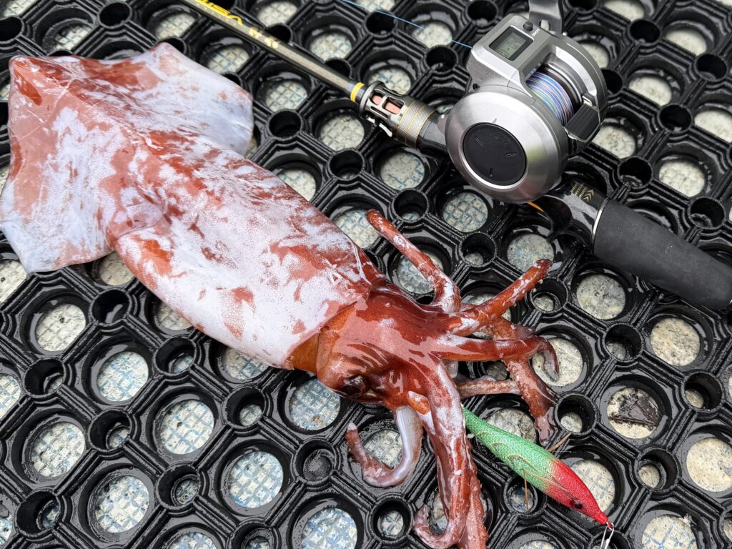 せっかく300m底から上がってくるドスイカです。ゲソ1で上がってくるとマジで悲しいのでゆっくり巻きましょう!