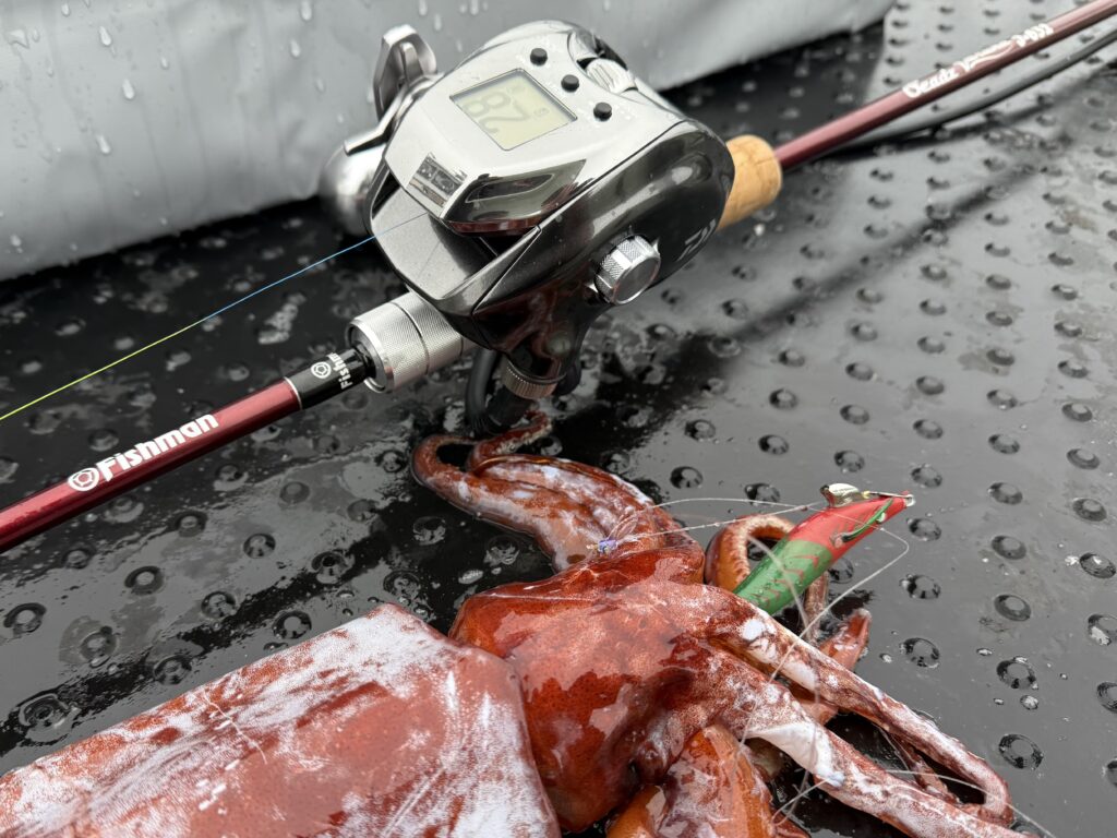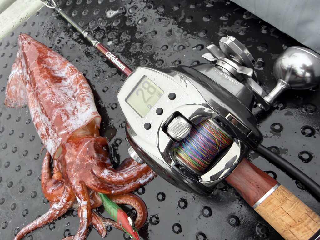 この深場のドスイカも低速で安定して実際に釣れましたし、100mラインを攻める羅臼マイカにも軽くて使いやすいでしょうし、とても重宝します!