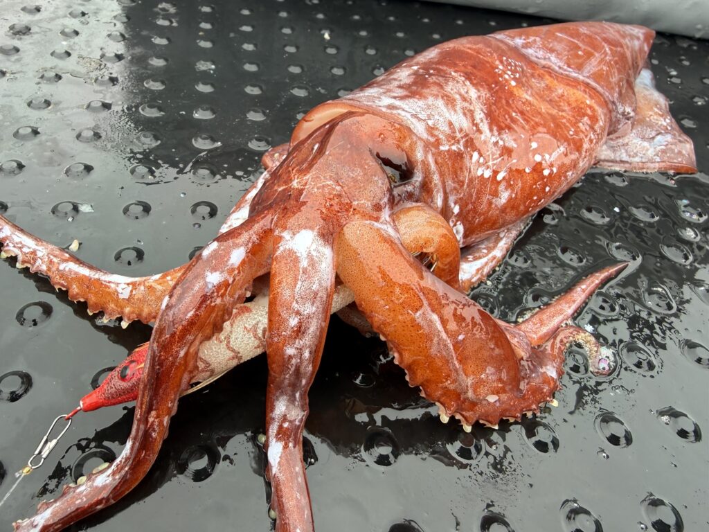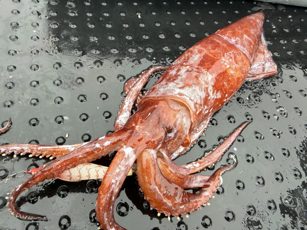 ドスイカとは、羅臼をはじめ、日本海、三陸より北の深海(300m以深程度)に生息するテカギイカ科の大型のイカ。故に攻める棚も300m以深あたりの釣りとなります。