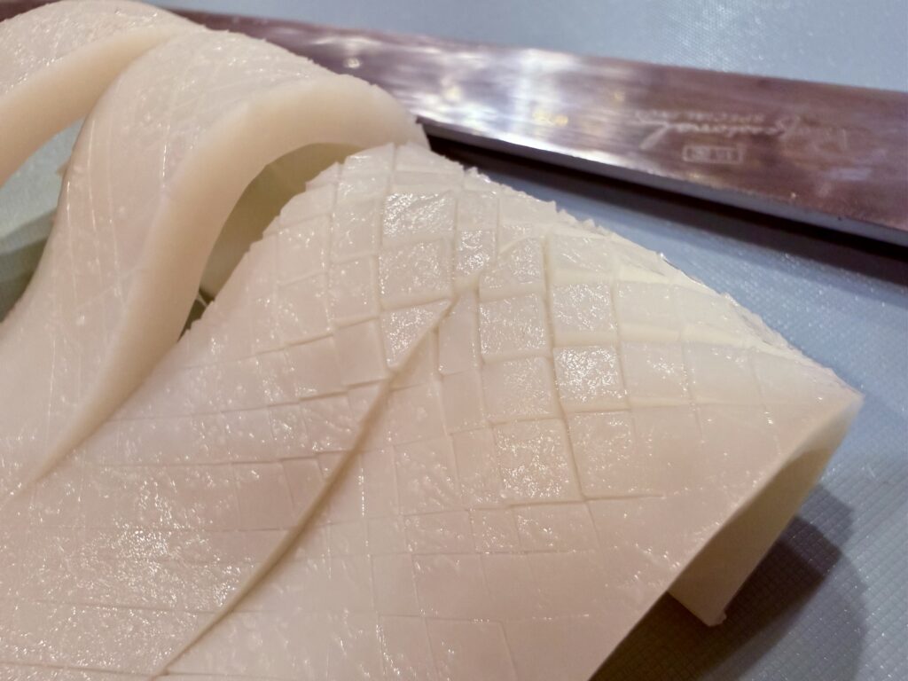 ② ドスイカの胴体とゲソを離す。