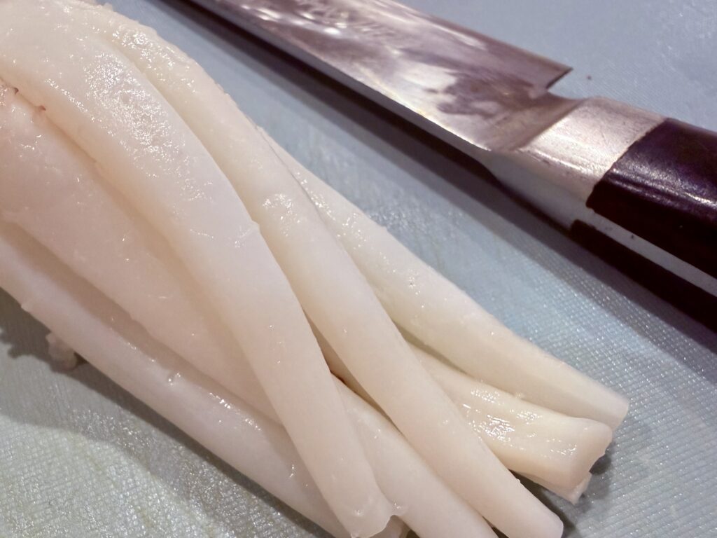 ③ 水煮たけのこをお好みのサイズにスライスする。