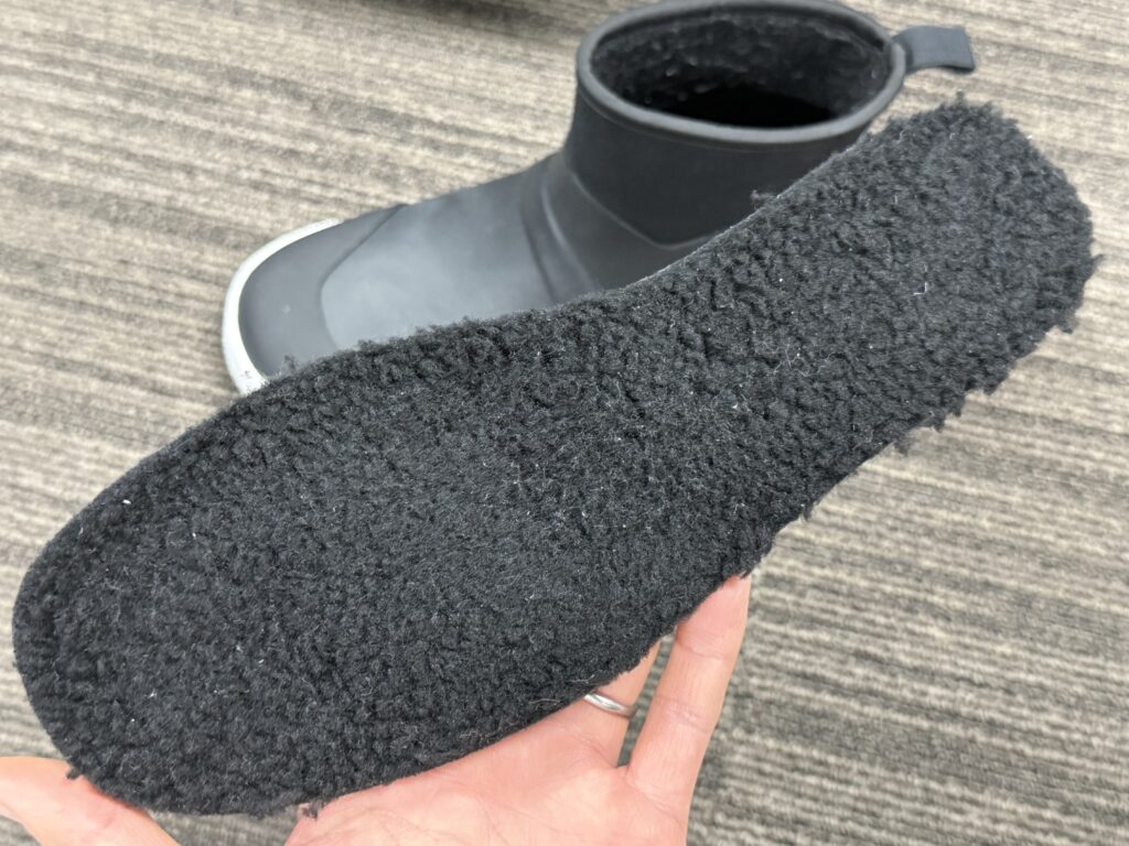 実際にインナーソールを取り外して触ってみましたが、生地も分厚く保温力抜群なのが納得できました。