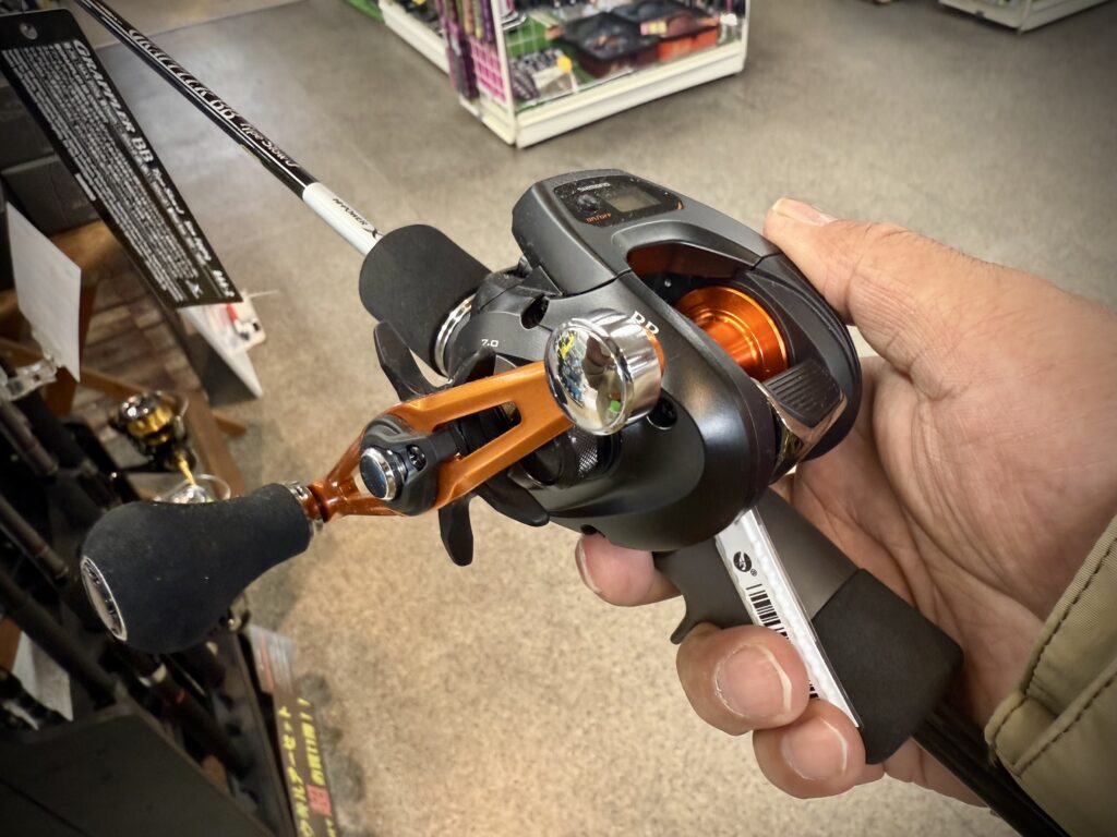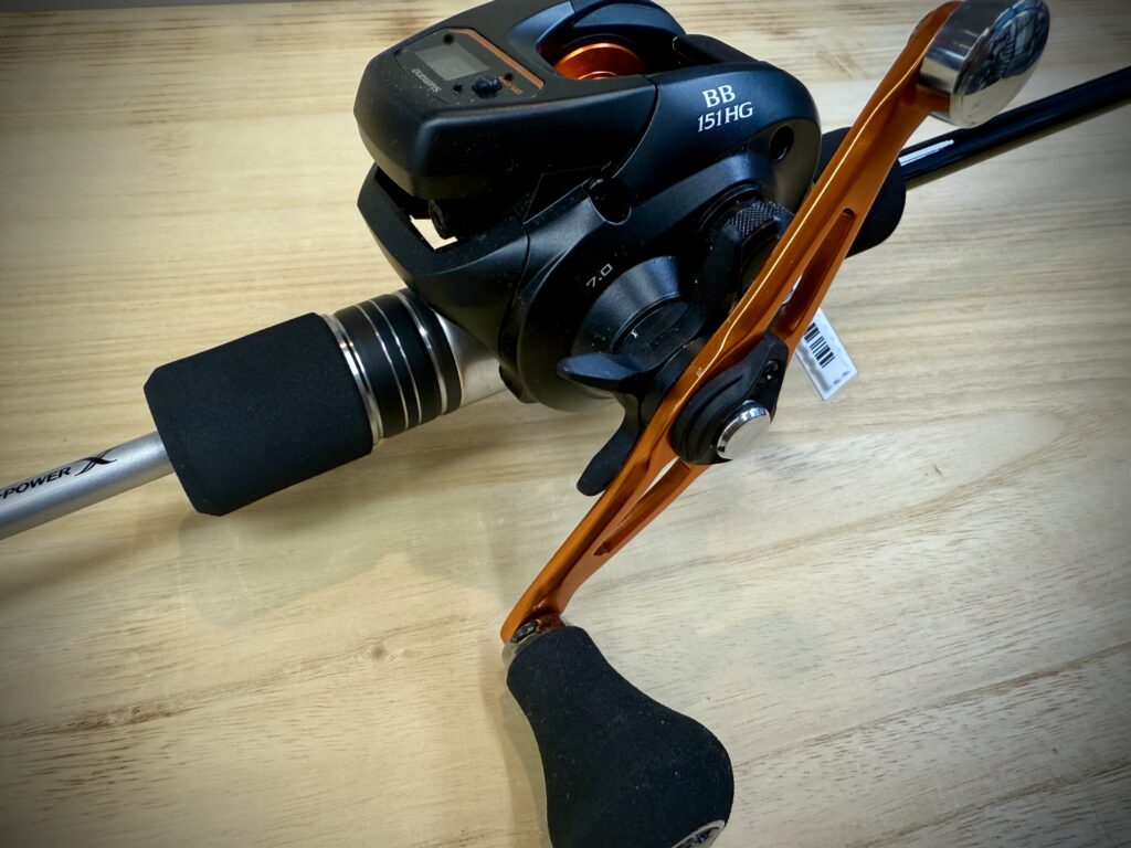 このロッドとの相性抜群なのが、この軽量カウンター付きリール「バルケッタFカスタム150DH」。
