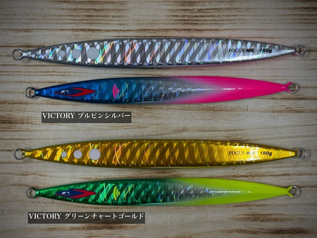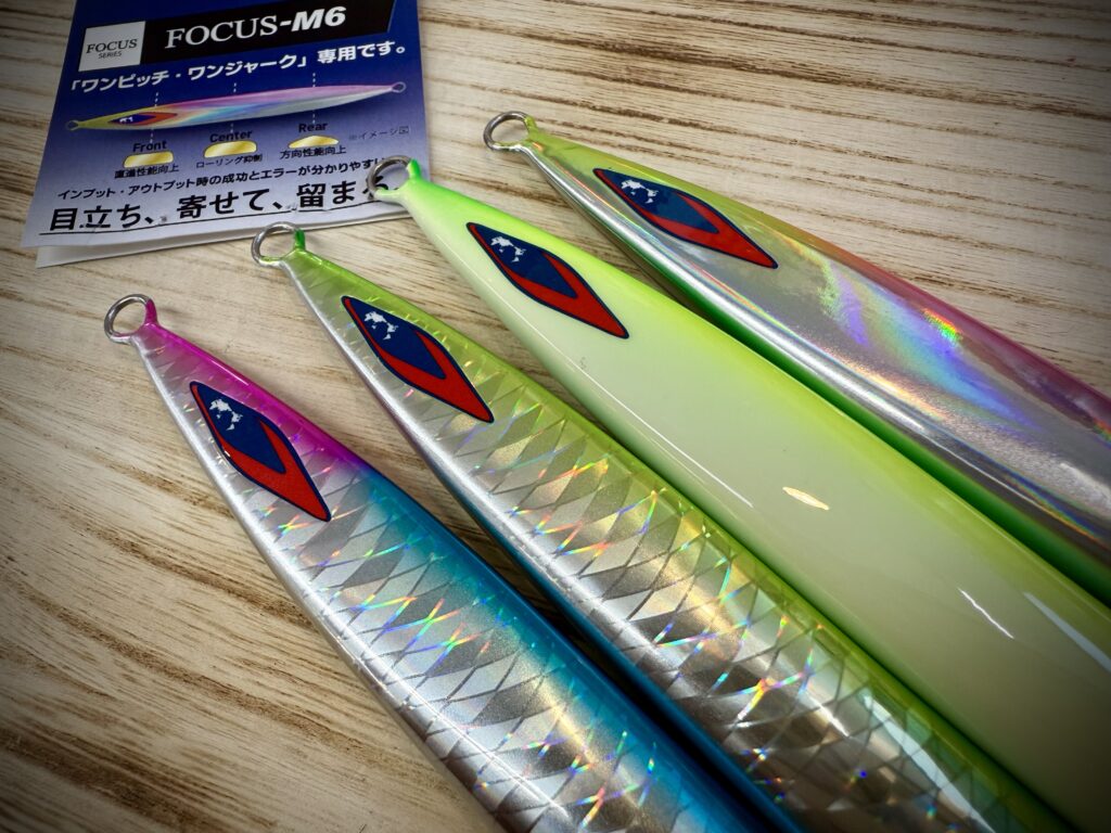 ここ北海道でも、サクラマスジギングやヒラメジギングでも絶大な釣果を見せたフォーカスM10よりも、シャープにボデイが薄くなっているM6。よりシャクリ易く、よりヒラヒラとフォールが抜群に効きそうなフォルムになっていますね!