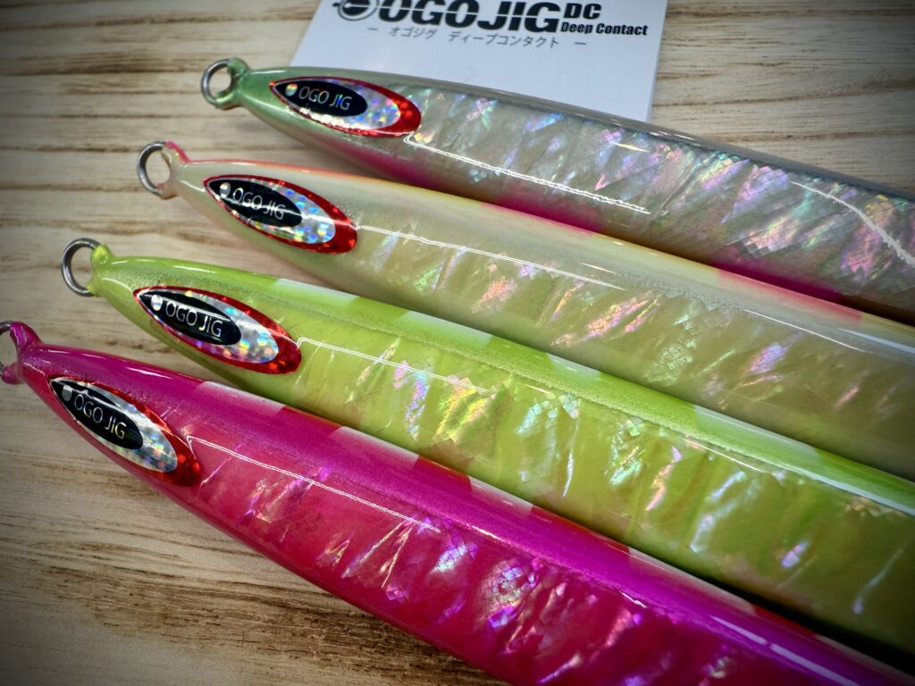 オゴジグDCは、安定したバランスでテーリングなどのミスが少なく、潮流の早い時や二枚潮にも対応し、ターゲットにアピールします。そんなオゴジグDCに今回の"シャンパンゴールド極"は間違いないジグ!ぜひ使ってみてほしい1本です。