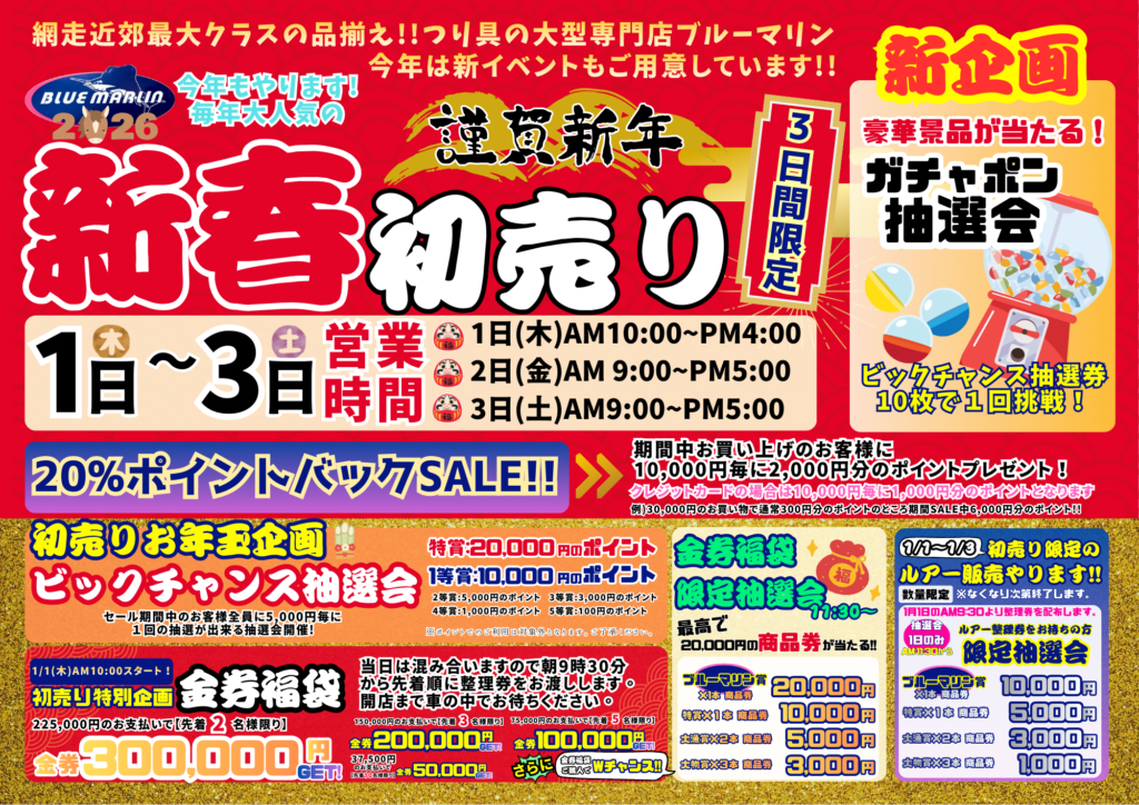 2026年 BLUE MARLIN 初売り情報解禁!〜金券福袋&レアルアー販売!〜