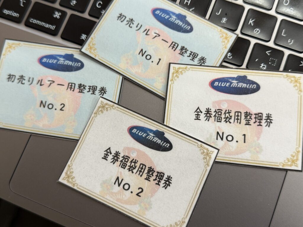 金券福袋とレアルアー販売の整理券は異なります。