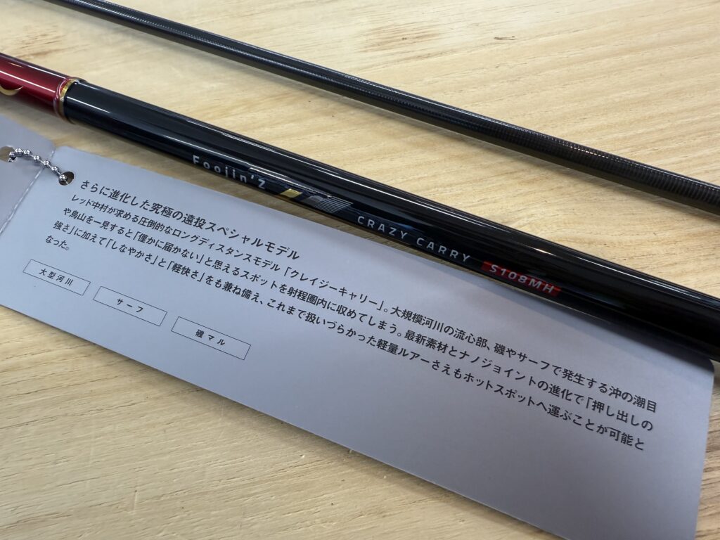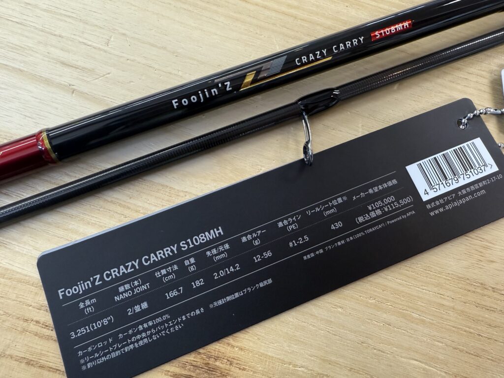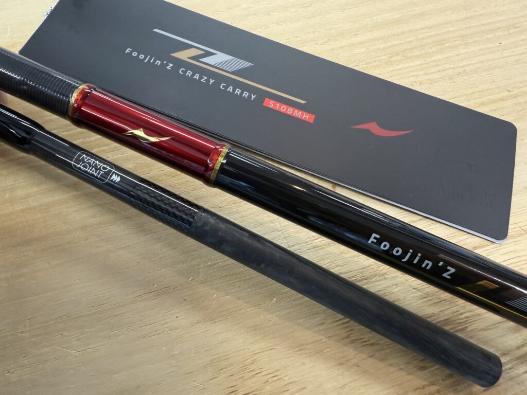 とんでもなくスペシャリティなロッドが・・・。なかなか実機はお目にかかれませんが、当店に"Foojin'Z CRAZY CARRY S108MH"が1本のみの入荷です。