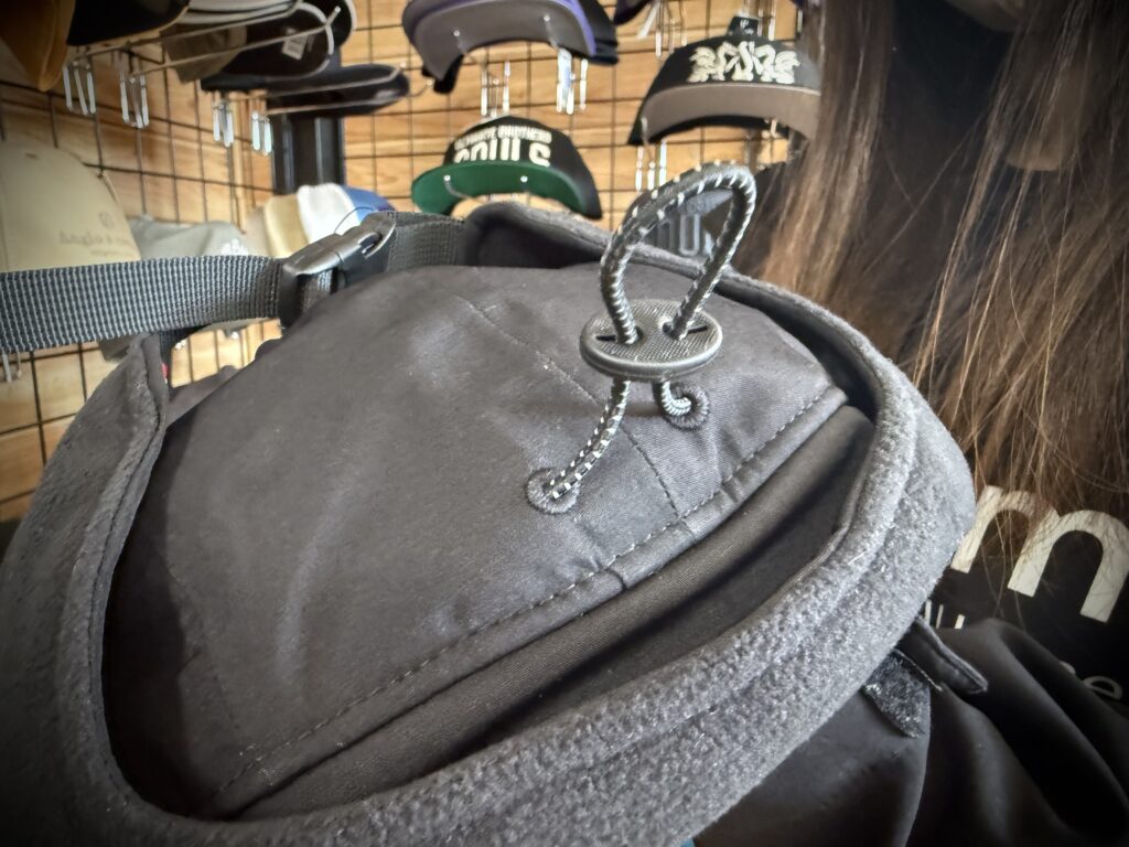 サイズ調整もドローコードが付いていて、厚手の手袋を履いていても引っ張るだけなので便利です。