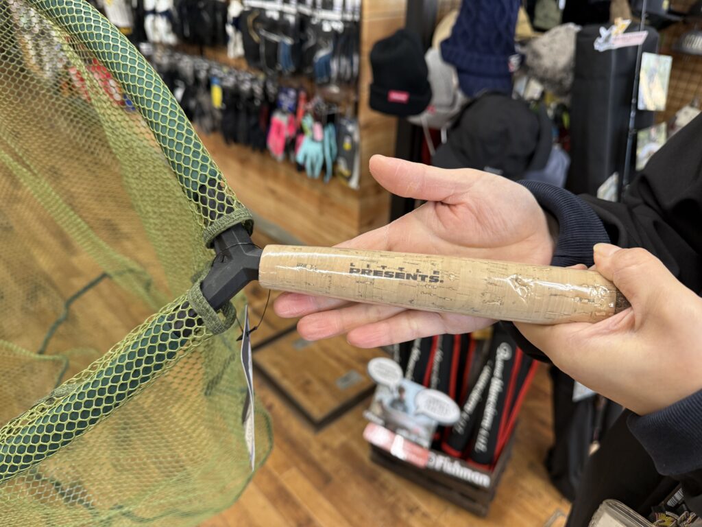 持ち手はコルクグリップになっているから、滑りづらく、アングラーの手の冷たさから守ってくれます。