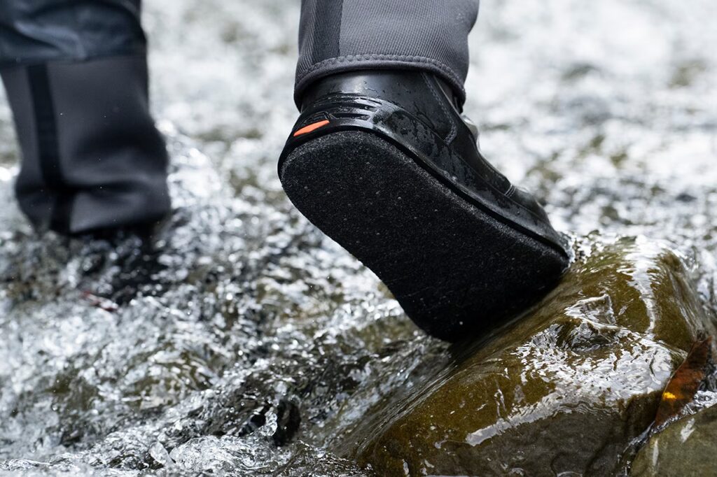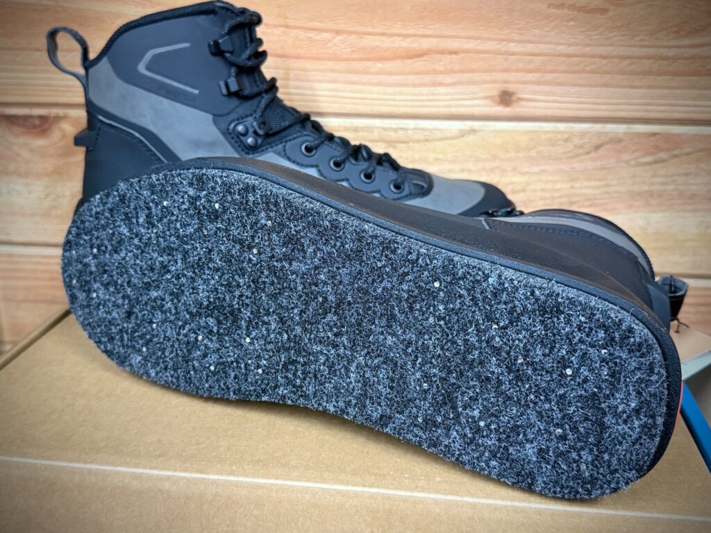 磯や渓流層にある、表面がデコボコした岩や、コケ、海苔に対してフェルト、ピンがグリップし安心感が段違いです。
