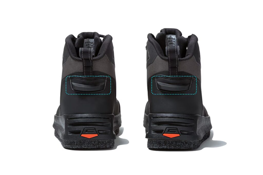これは新しい!ウェーダーのグラベルガードがズレにくい、ラバーのホルダーを踵上部に配置。グラベルガードがずり上がると、靴内に砂や石の侵入が起こり、ストレスやクロロプレンソックスのダメージにもつながります。つま先、かかとの前後からしっかりとグリップすることで、ずり上がりのストレスから解放します。