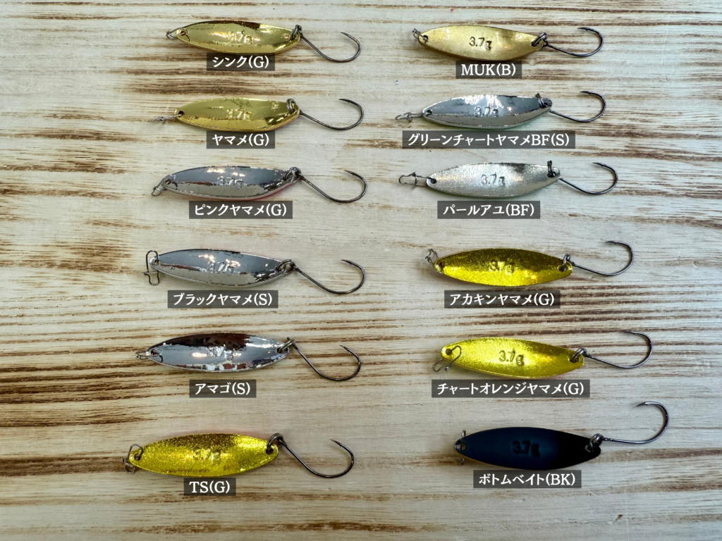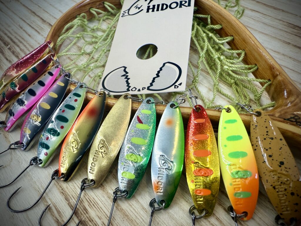 ボディサイズが限りなく細く小さいチドリは、低活性時の鱒達をいかにヒットに持ち込めるかという所を追求したスプーンです。