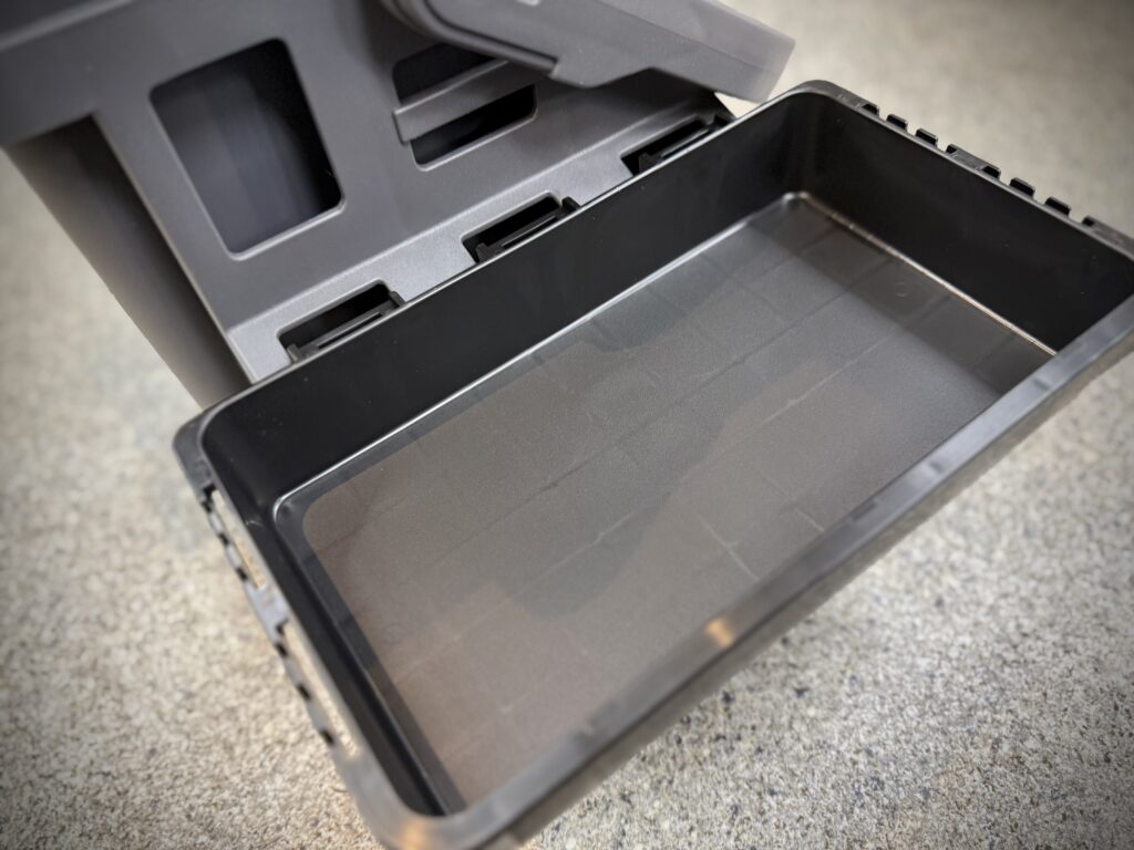 インナーを跳ね上げると、メインボックスが現れ、こちらも取り外し可能な仕切りが付属します。