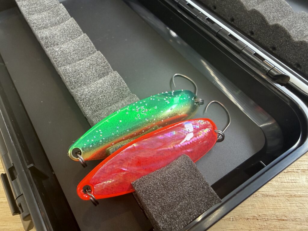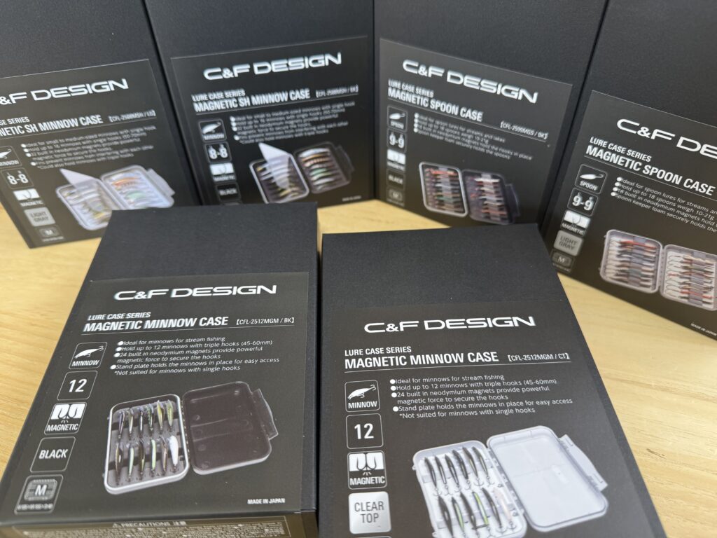 デザインも良いし、使い勝手が良すぎるので当時から愛用されてた方も多いかと思います。当店にはミノー用が2サイズの2色展開。スプーン用は1サイズの2色展開が入荷となっています。