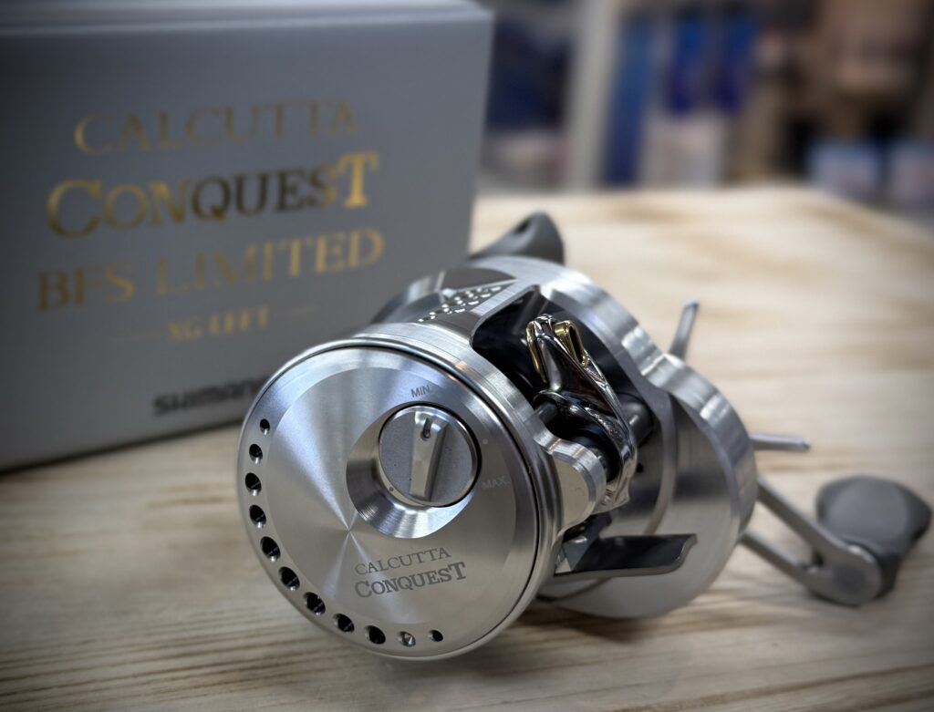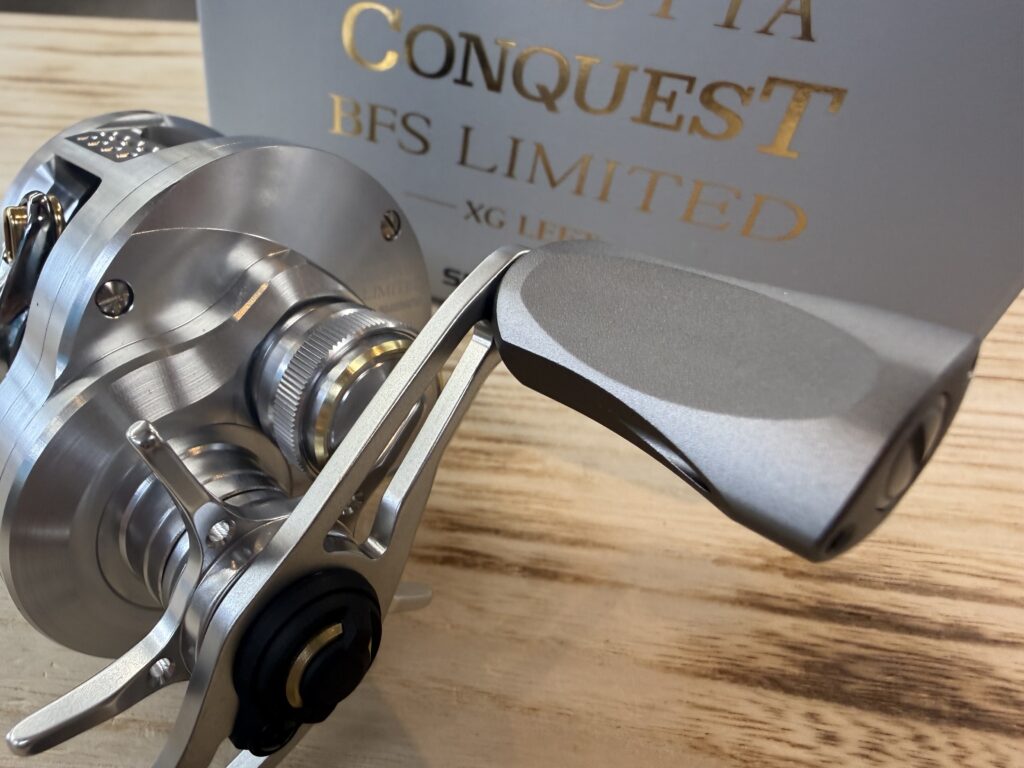 もともと丸型ベイトフィネス機として人気の高いカルカッタコンクエストBFS ですが、今回は“限定生産モデル”ということで、リミテッドの名に相応しく、見た目からしてかなり特別感をビンビン感じます。