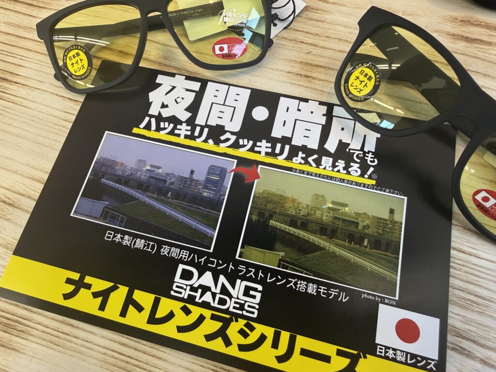 久しぶりのDANG SHADES入荷!今回は夜間・暗い場所でもハッキリと、クッキリと見えるナイトレンズシリーズをメインにご紹介!