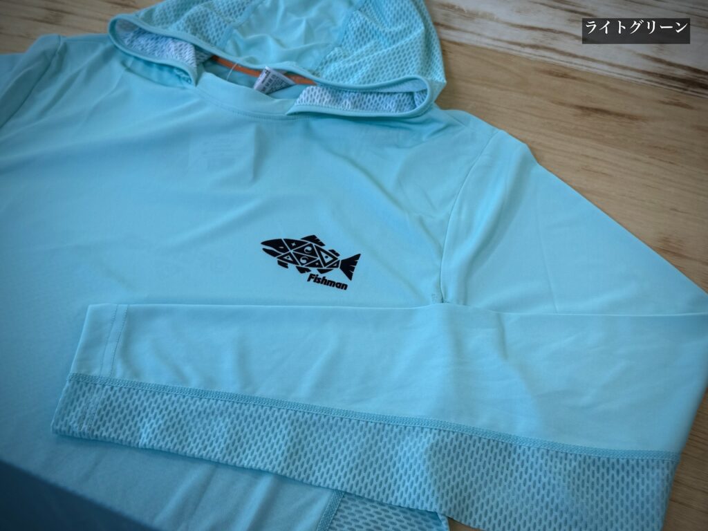 紫外線のカット率は95%以上で肌を守り、速乾性と接触冷感の機能を持った生地を採用。