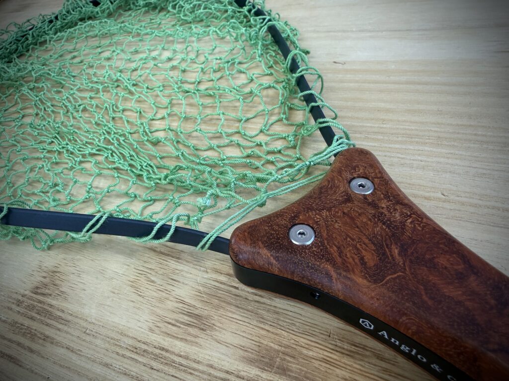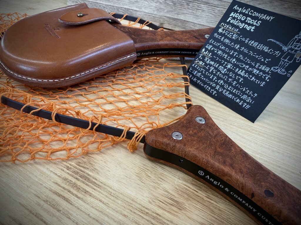 【ハンドルは銘木を削りだしオイルフィニッシュ、ネットは手編みというこだわりのアイテム】