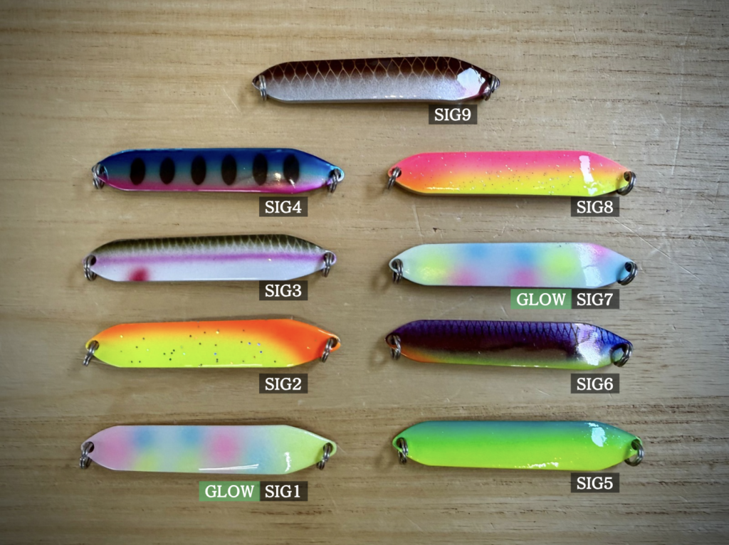 このSIG5が春の湖でもアメマスにすこぶる反応良くてお気に入りの1本。そのSIGカラーが、今回さらに小粒になり、軽量ウエイトということで、一撃必殺!こりゃもうエサ確定ですよね(笑)。早く使いたいです。