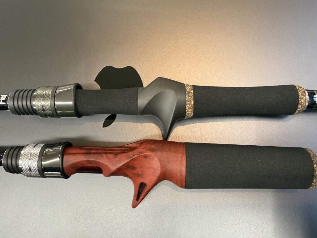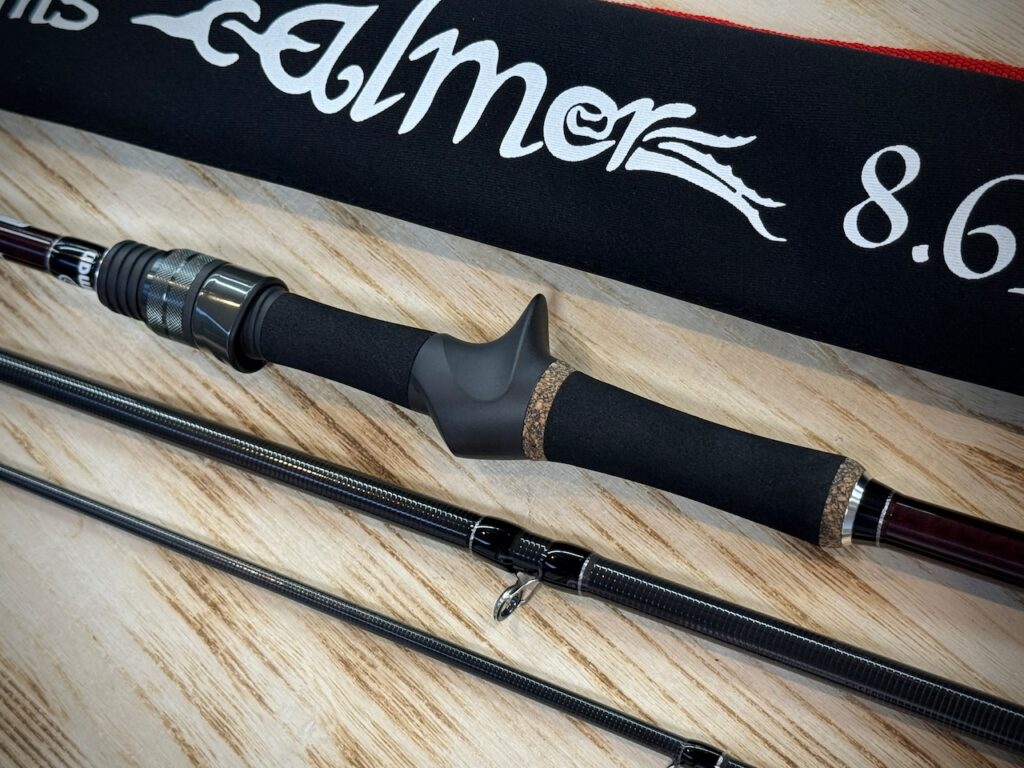 自重も軽く180g前後のベイトリールを合わせると、支点がフォアナットにくるので先重りしないので一日中シャクリ続けても疲れない。